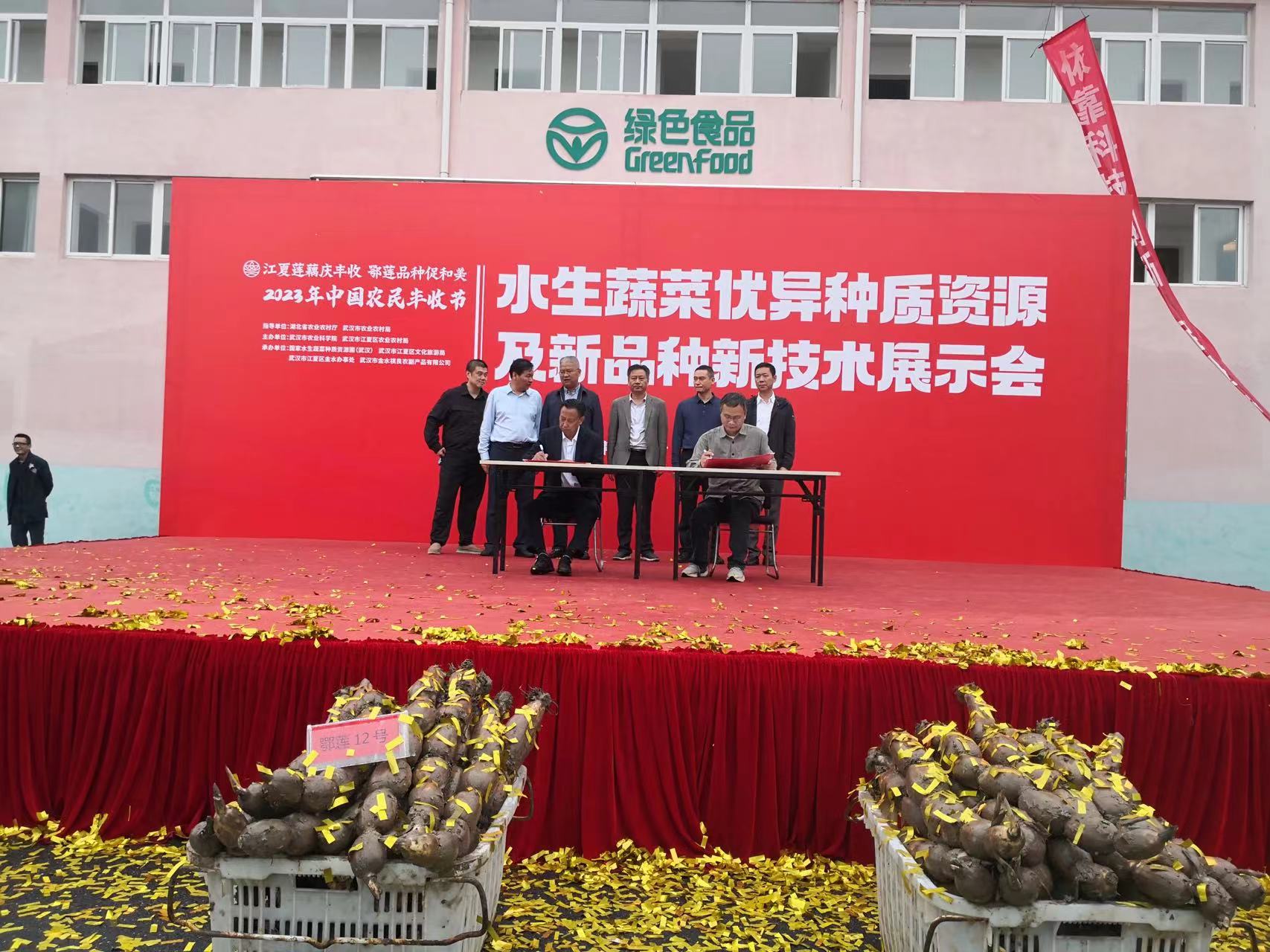 本次庆祝活动由武汉市农业科学院、武汉市江夏区农业农村局主办,国家水生蔬菜种质资源圃(武汉)、武汉市江夏区文化和旅游局、武汉市江夏区金水办事处、武汉市金水祺良农副产品有限公司承办,武汉市农业科学院蔬菜研究所所长刘武及武汉市金水祺良农副产品有限公司总经理吴近货分别主持,湖北省农业农村厅种业管理处二级调研员周明望宣布丰收节庆祝活动开幕。庆祝活动分领导致辞、合作协议签订、莲藕新品种新装备推介、互动颁奖、农民歌舞联欢及水生蔬菜优异种质资源及新品种、湖北省莲产业链及“515”行动科技成果现场及田间展示、武汉市金水祺良农副产品有限公司加工厂参观等精彩环节。