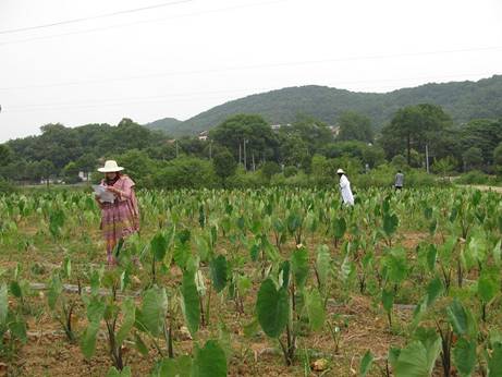 2012年6月5日至6月25日,华中农业大学的洪霓教授带领其博士生、硕士生一行4人,在武汉市蔬菜科学研究所国家种质武汉水生蔬菜资源圃郑店新址进行了芋花叶病毒田间药效试验。通过喷施不同浓度的药剂,调查其对芋花叶病毒发病指数的影响。通过对发病症状、病级及发病株数的调查统计,初步认为该药剂对芋花叶病毒的防治有一定的效果。